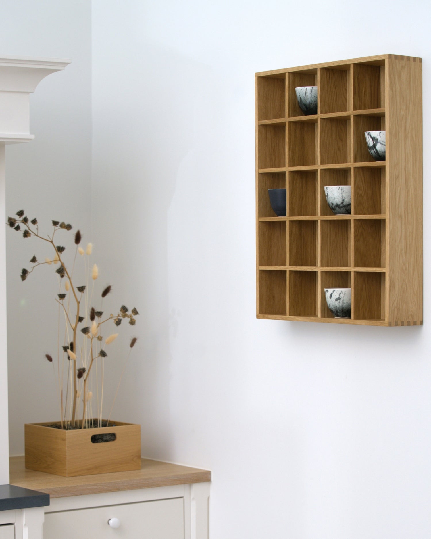KA32 er det ideelle valg til køkkenalrummet eller det rummelige køkken. Denne kopkasse er ikke blot en opbevaringsløsning til 20 kopper, den fungerer også som en imponerende kunstinstallation på væggen.