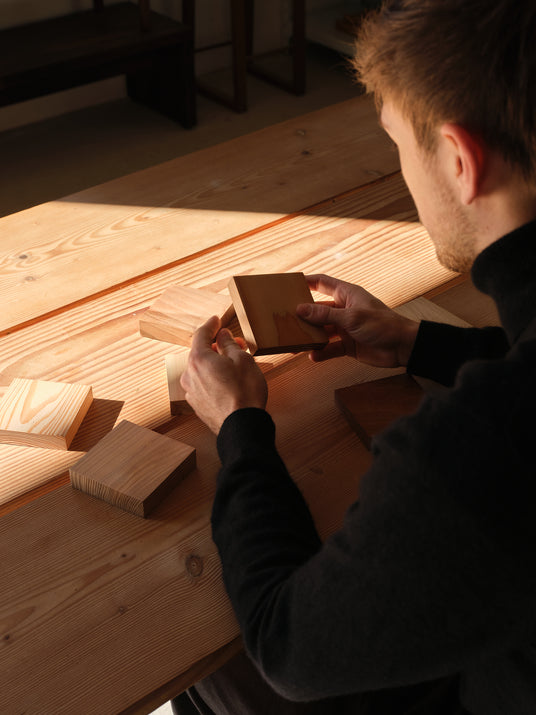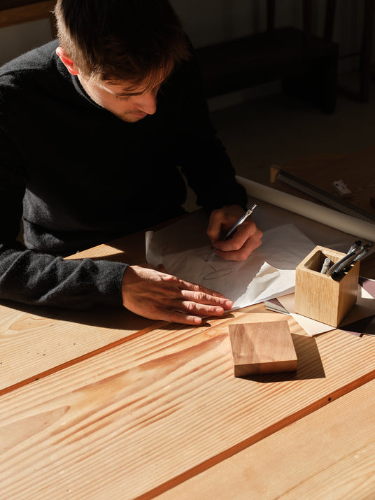 Hos Kath & Andersen bliver alle produkter designet og udviklet internt på vores værksted i Kolding, Danmark. Hvert møbel begynder som en idé, der udforskes gennem skitser, materialestudier og en række prototyper, indtil designet opnår den balance mellem funktionalitet, konstruktion og kvalitet, som vi stræber efter.