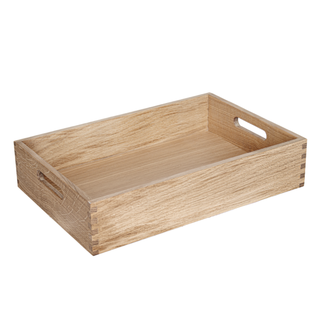 KA17 er den store model af vores opbevarings- og alt-muligt-kasse, der er designet til at håndtere en bred vifte af funktioner. Brug den til servering, opbevaring eller som en praktisk anretningsbakke – mulighederne er uendelige. Fremstillet i massivt egetræ og udstyret med stærke tapsamlinger, sikrer den både holdbarhed og et stilfuldt udseende. Den matlakerede overflade beskytter mod daglig brug og bevarer træets naturlige skønhed. KA17 kombinerer funktionalitet og æstetik og er et tidløst valg til ethvert hjem.