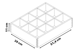 Udvendigt måler kopkassen 51,4cm x 39cm x 11 cm.