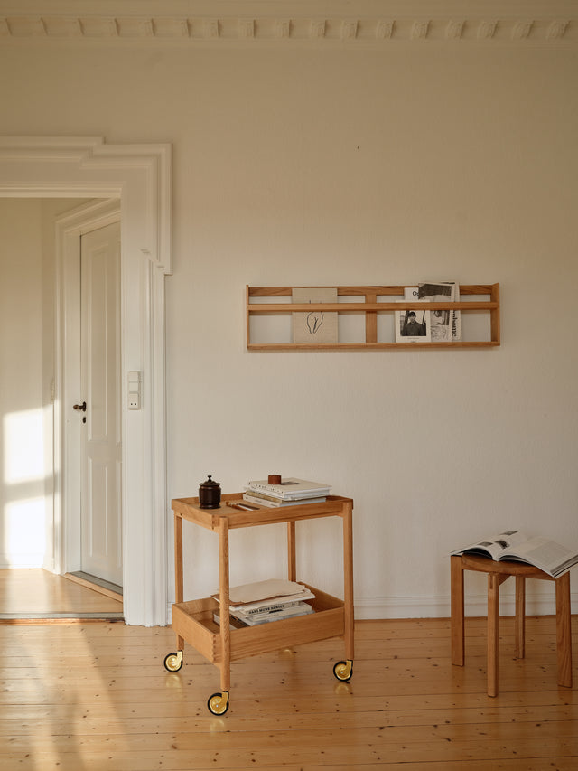 Inspirationen til magasinholderens design stammer fra den stolte danske snedkertradition og er derfor samlet med elegante fingersamlinger og svalehalesamlinger.